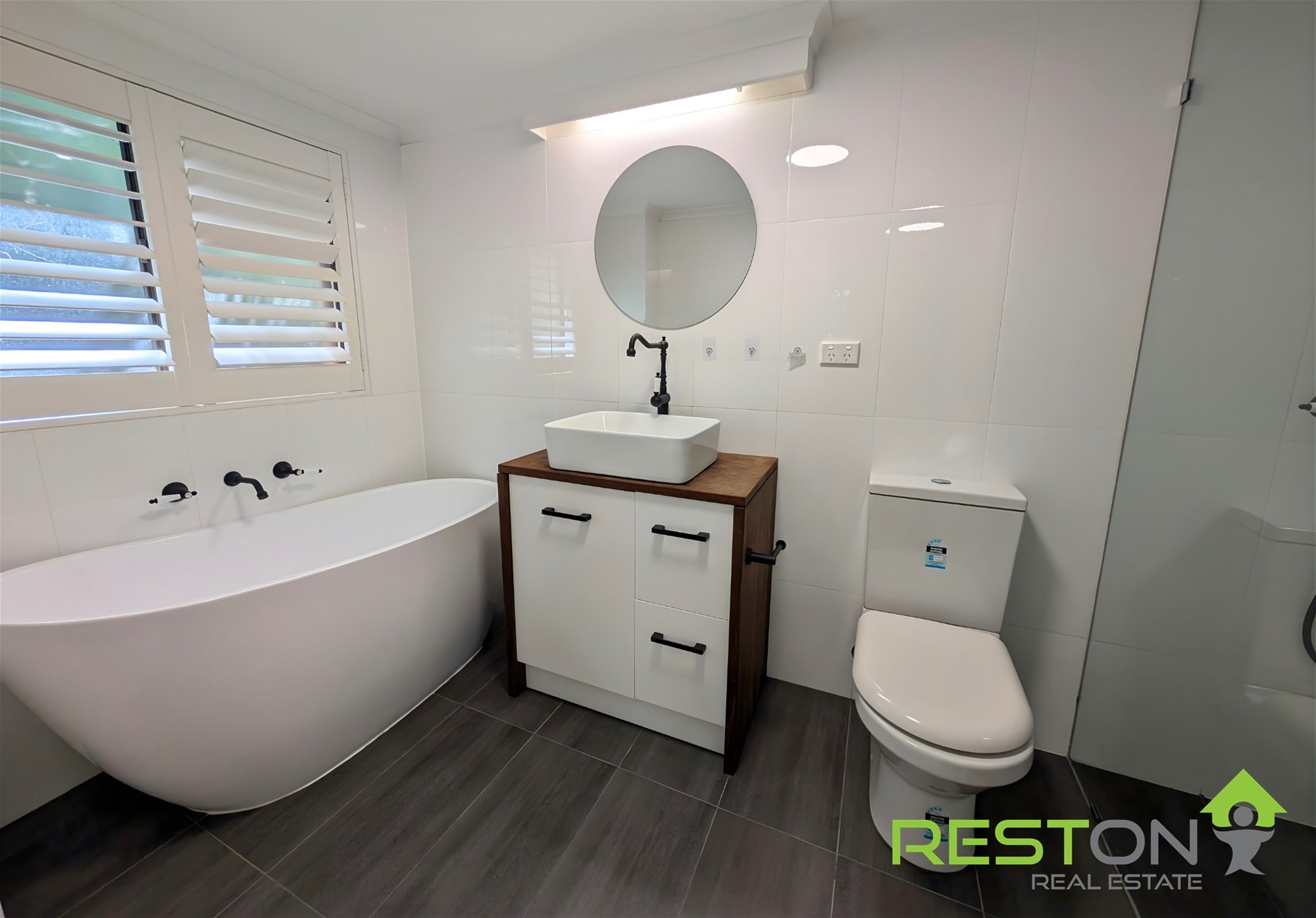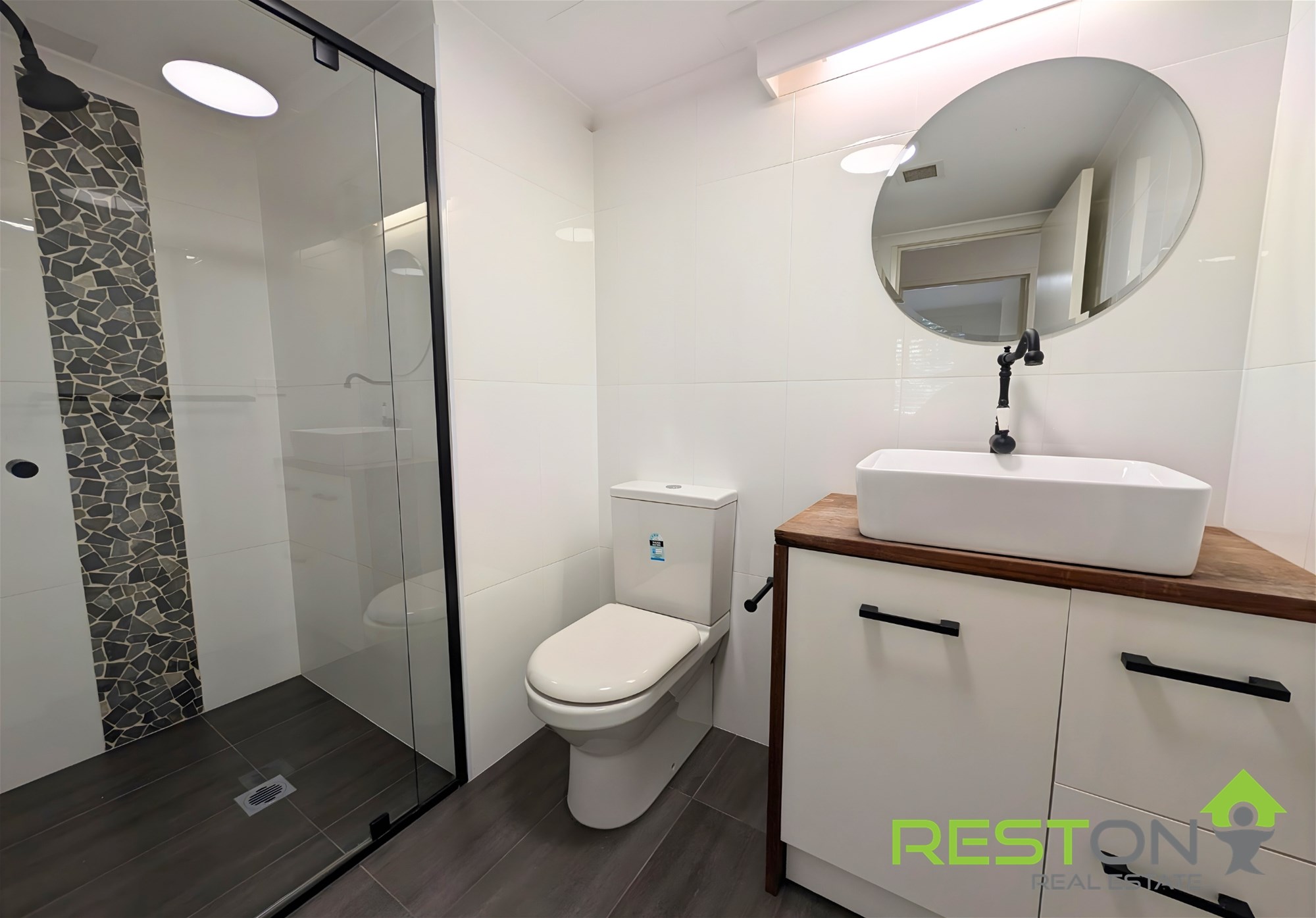 • Contemporary bathrooms with floor-to-ceiling tiling and rainfall shower